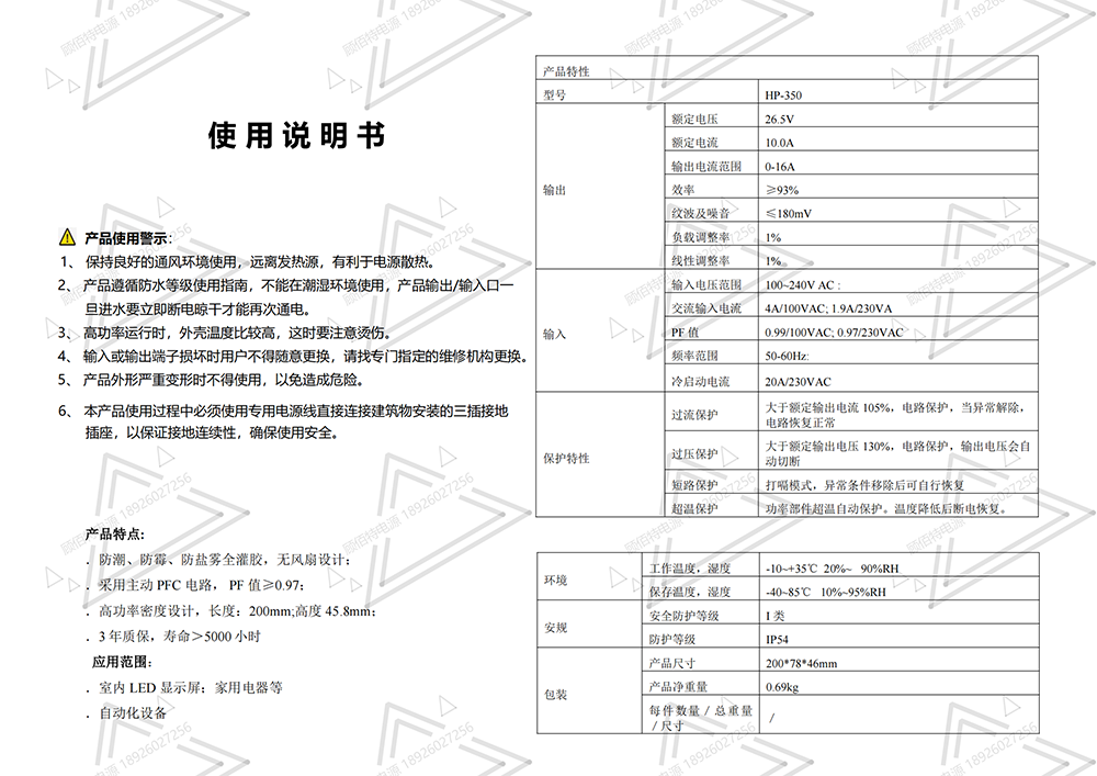 保護(hù)特性 | 過流保護(hù) | 大于額定輸出電流105%,電路保護(hù),當(dāng)異常解除,電路恢復(fù)正常 |