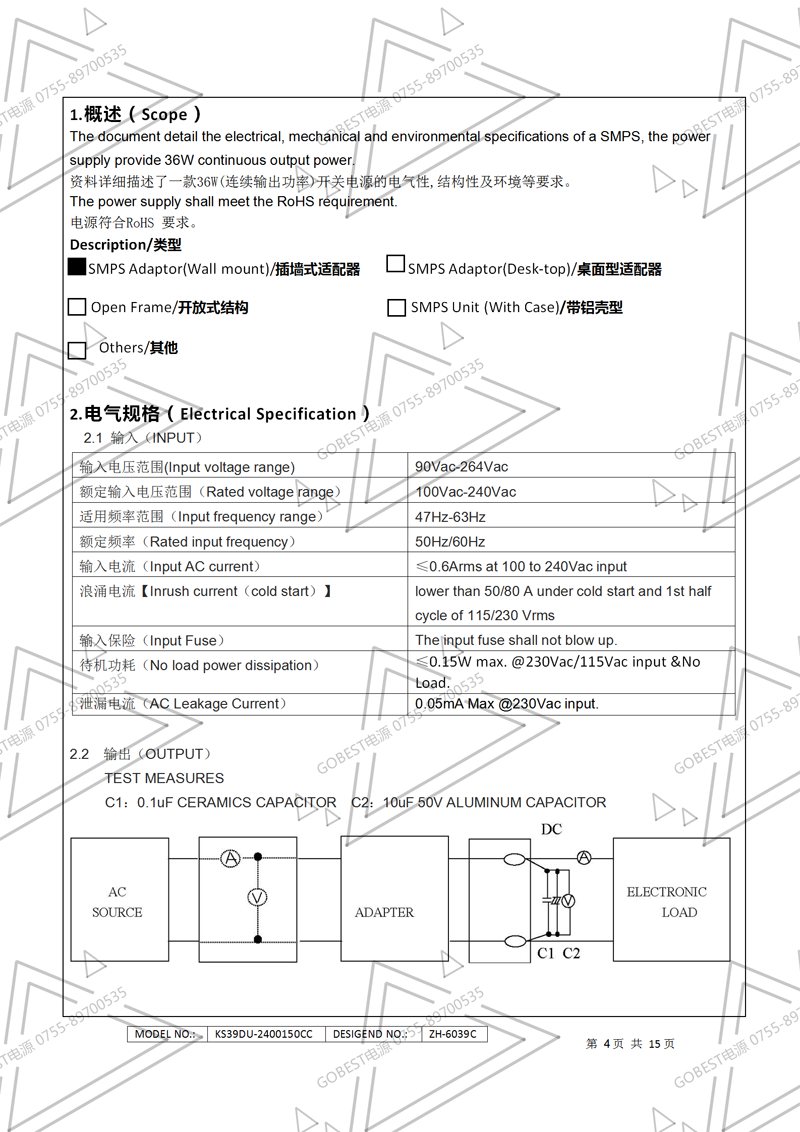 24V1.5A電源適配器規(guī)格書(國標(biāo)插墻式)