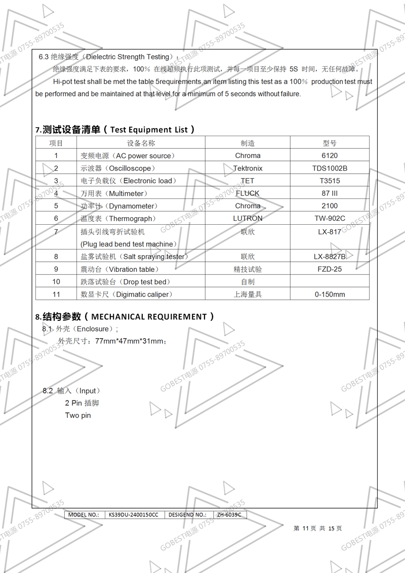 電源規(guī)格書