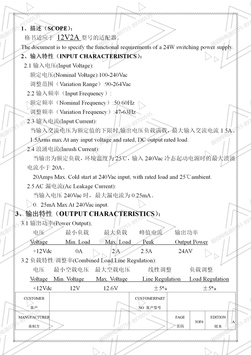 電源規(guī)格書(shū)