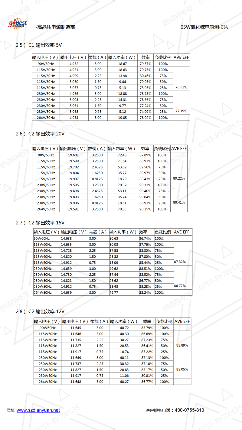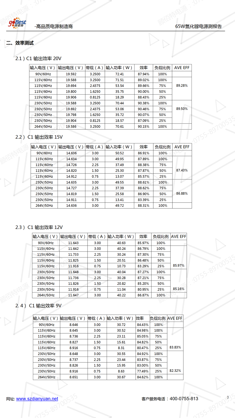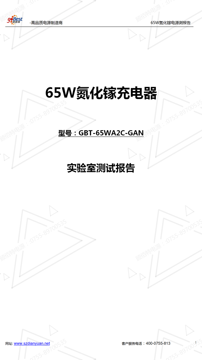 65W氮化鎵充電器實(shí)驗(yàn)室主要性能測試報(bào)告